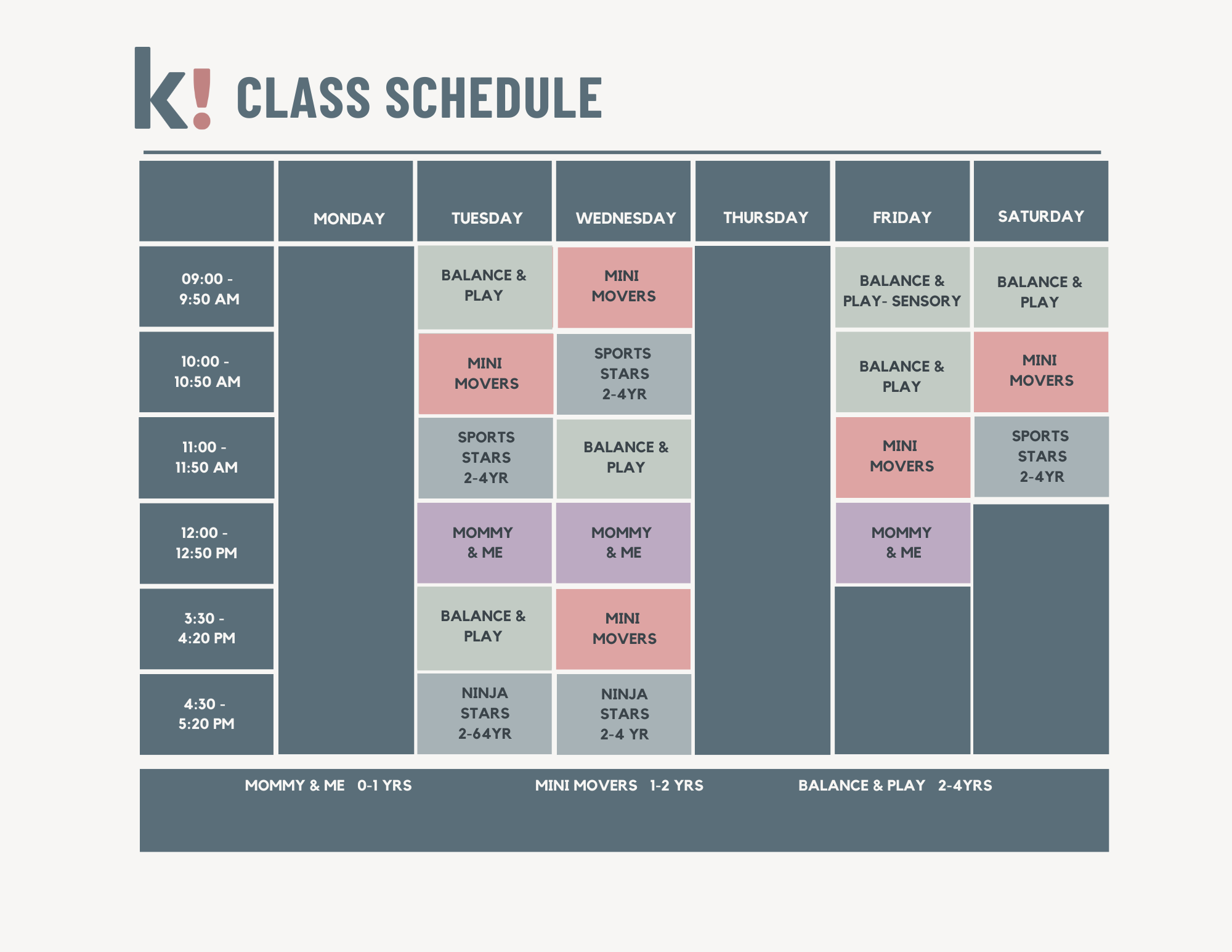 Play-based classes centered on general movement, where kids develop motor skills, coordination, and confidence through fun activities and obstacle courses!
